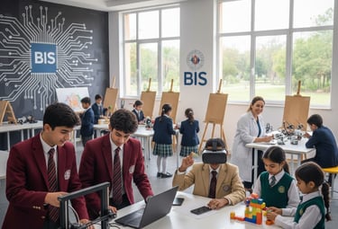 Our classrooms are spacious, bright, and fully equipped with smart technology, encouraging interactive learning and collaboration. Students enjoy access to well-stocked science and computer laboratories, modern libraries, and art and music rooms that spark creativity and imagination.
