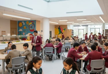 We also provide dedicated areas for early learners, science labs for upper grades, and comfortable student lounges and cafeterias designed to enhance the overall school experience.